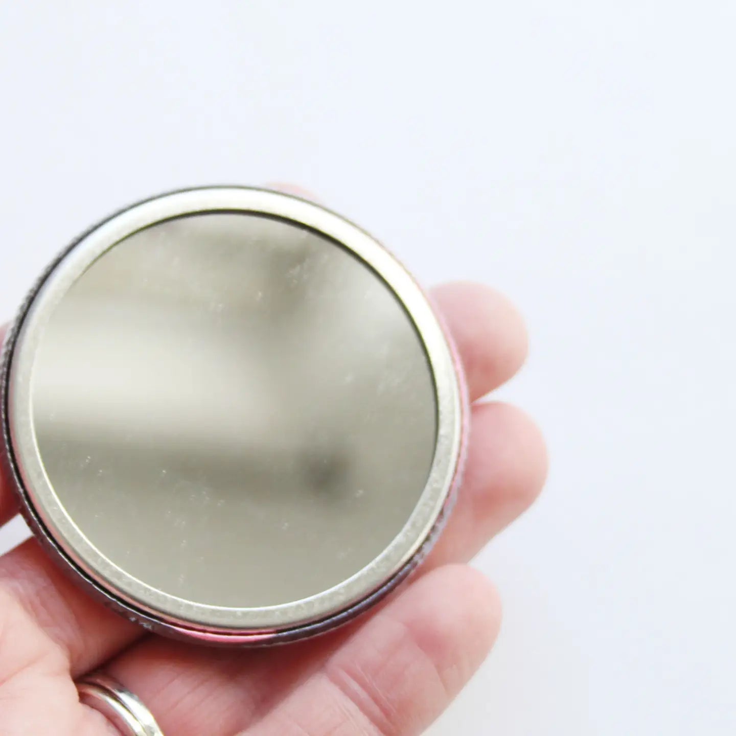 2.25 inch round mirror of my original design, vibrant print protected by mylar and mirror on the back.