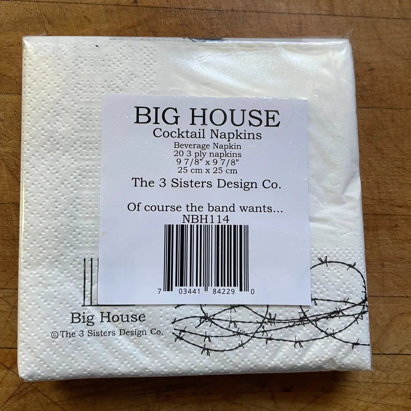 All the snarkiness and sassiness of our Big House mugshot line, now on a cocktail napkins. These beauties come in a cellophane wrapped pack of 20 3 ply napkins (because we're fancy like that). Standard cocktail napkin size, 9 7/8" x 9 7/8". Front image is the mugshot and sassiness, the inside and back are wrapped in prison barbed wire. Labeled and barcoded and ready to go. And Made in the USA.