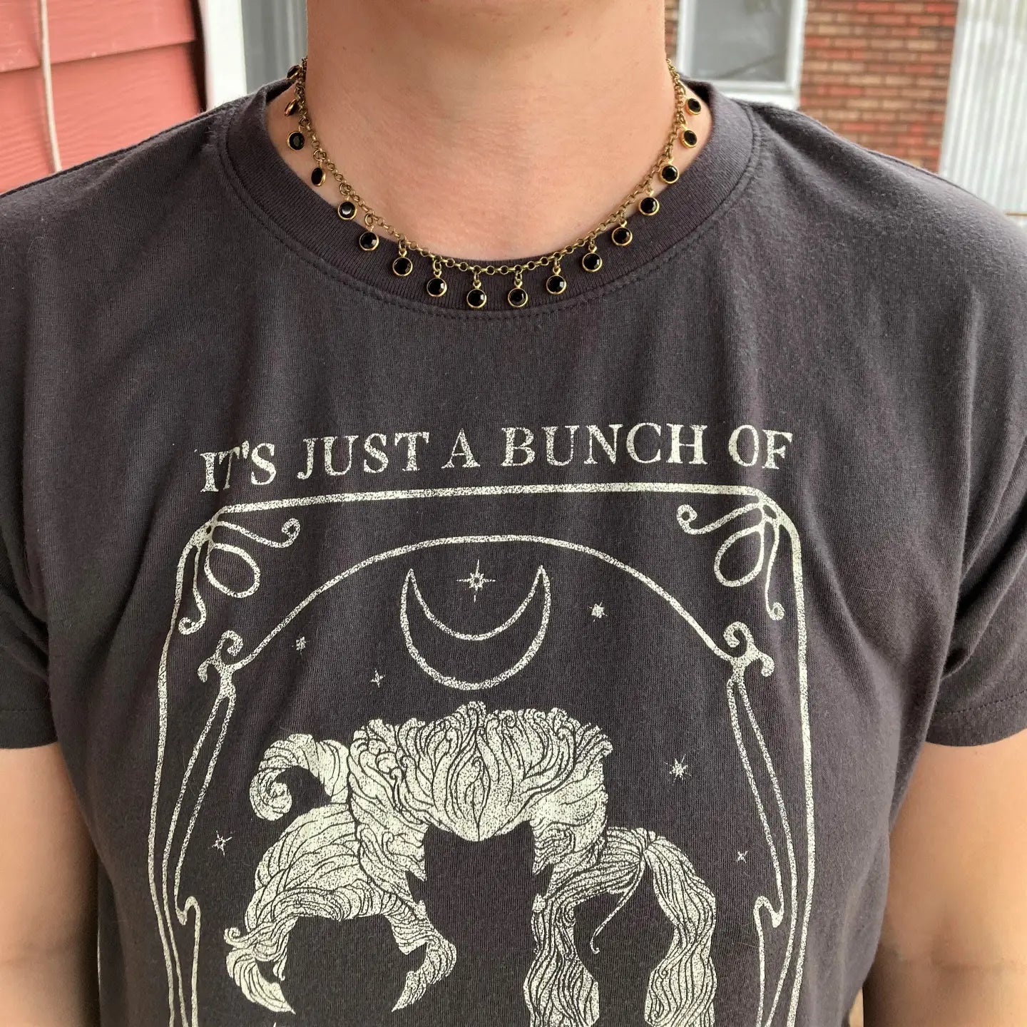 Details: Measures 14.5 inches long and has a 1 inch long extender (so, 15.5 total inches); Made with vintage deadstock channeled crystal charms; Made with new antiqued brass rolo chain and a matching lobster closure; Charms measure 3/8 inches long and 1/4 inches wide.