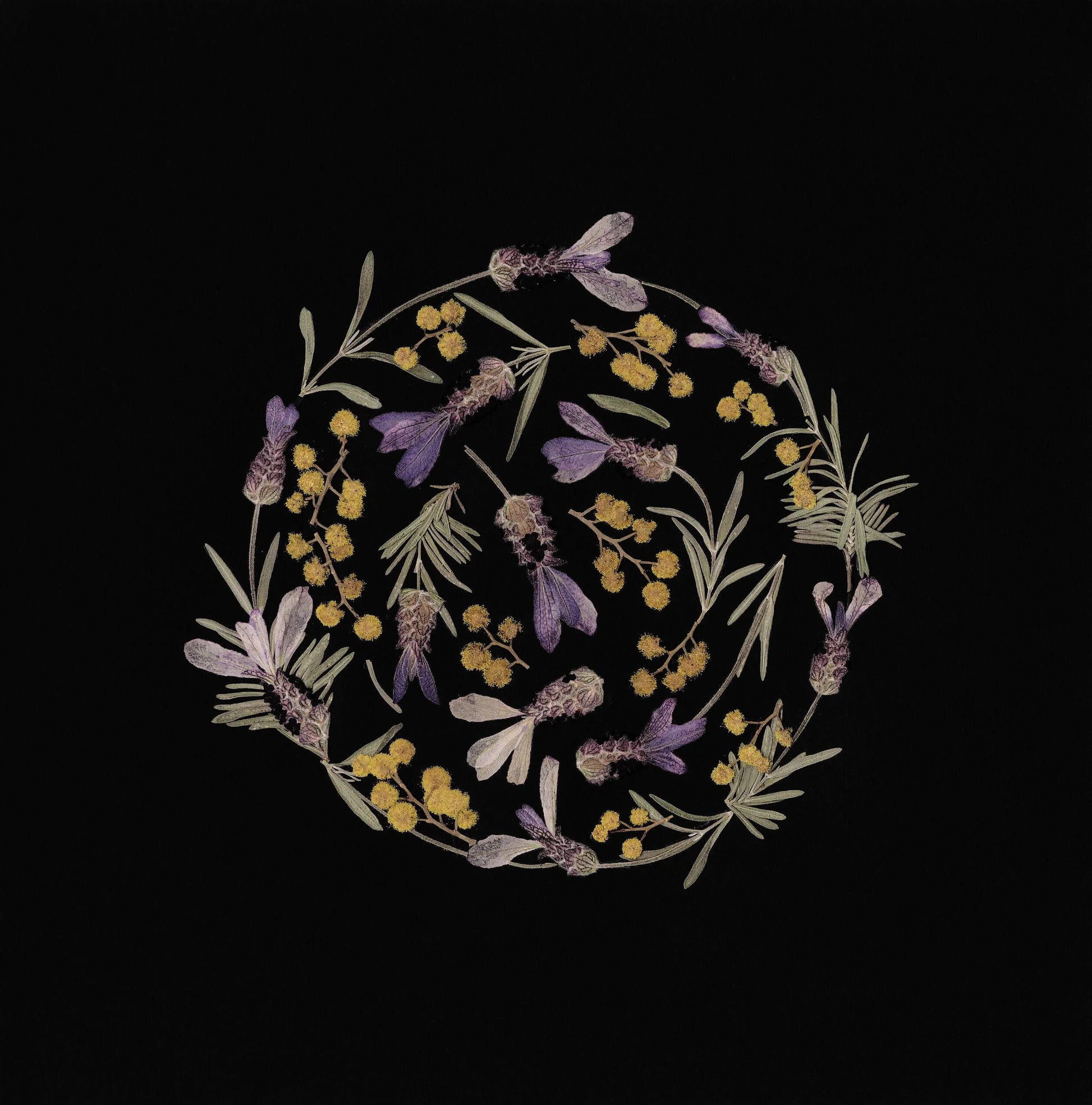 - Lavender Mimosa Moon Dance: This piece includes pressed lavender and mimosa flowers in the shape of a full moon!
