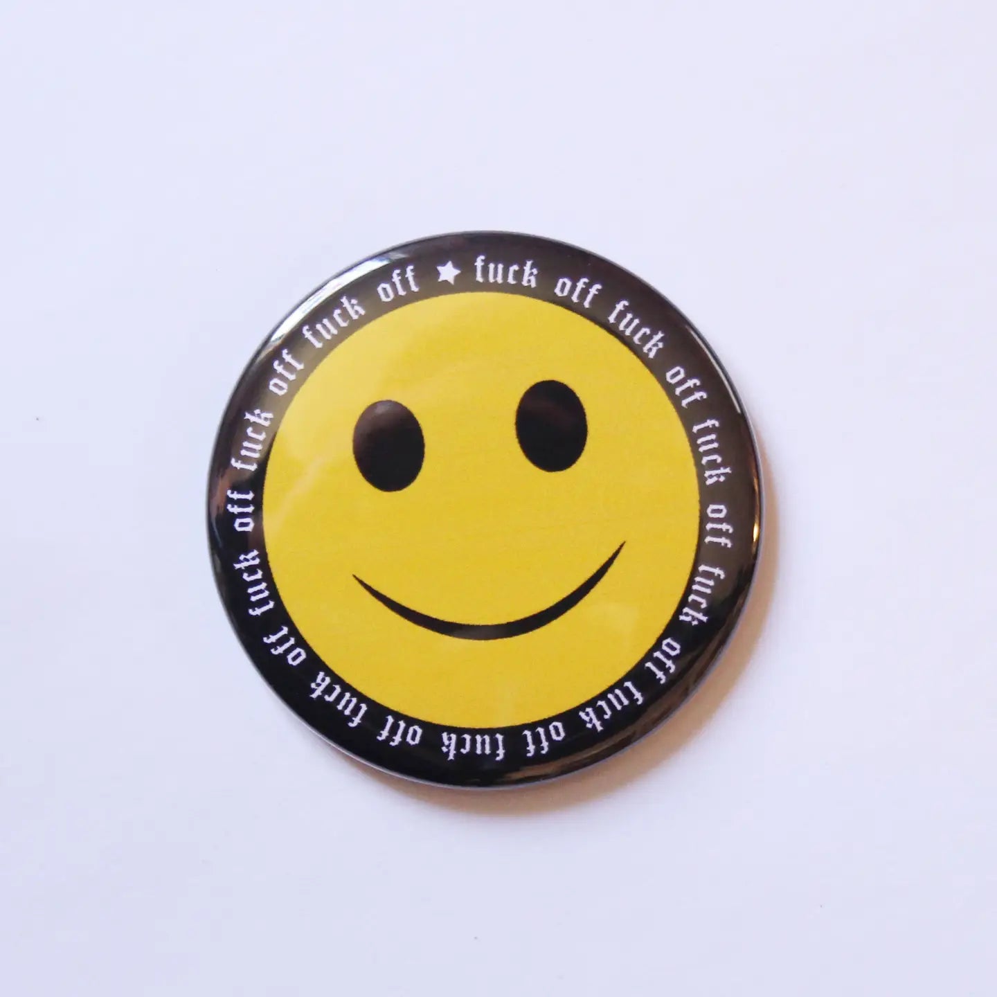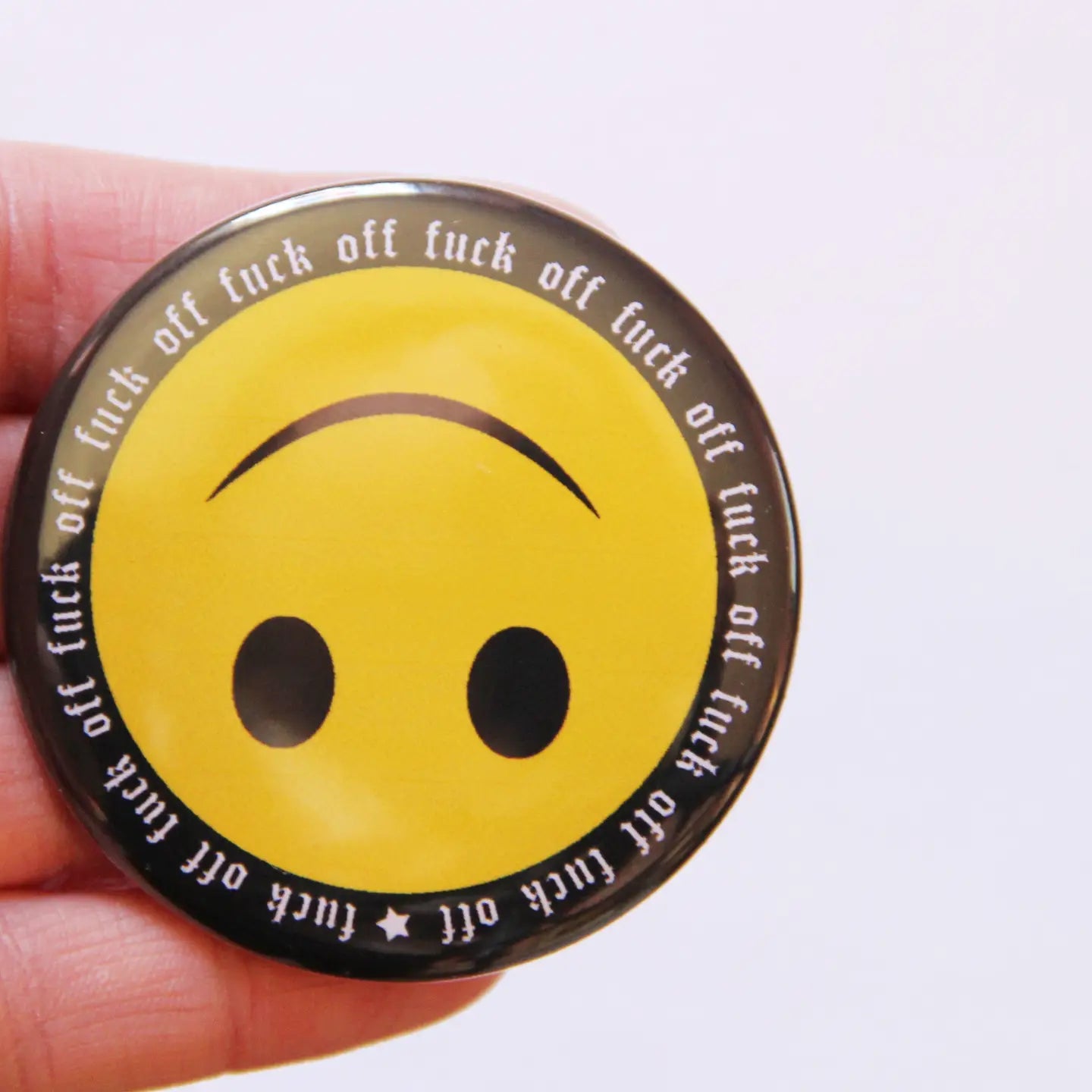 Subtle. Can be worn upside down or not! Border says "fuck off" in tiny old english font.