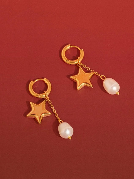 Lauréa 18K Gold Non-Tarnish Star Pearl Drop Earrings