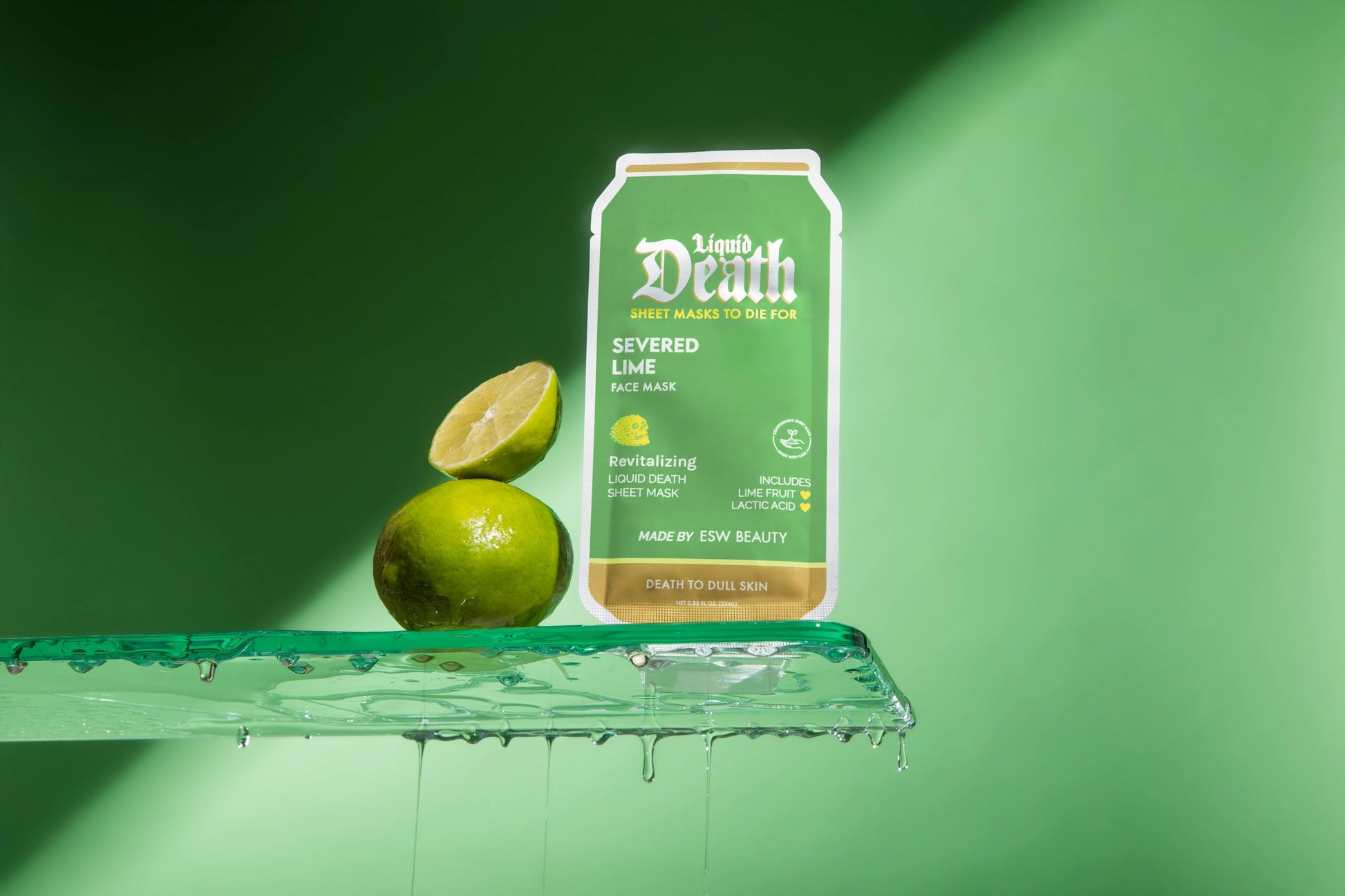 Revive your skin from the dead with Severed Lime, a skin-awakening sheet mask inspired by Liquid Death that exfoliates, purifies, and re-energizes your complexion. Infused with cooling glacier water and packed with powerful fruit enzymes, vitamins, and botanical actives, this treatment smooths texture, brightens tone, and breathes life back into tired, lackluster skin.