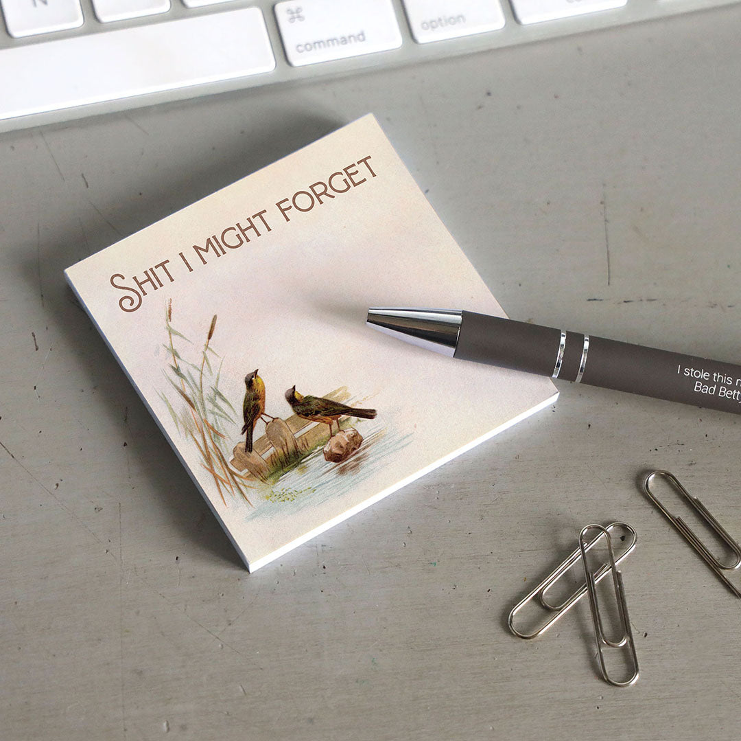 Keep track of life's essentials with our vintage-inspired 'Shit I Might Forget' sticky notepad. It's the perfect blend of humor and functionality for your daily reminders. A great gift for coworkers, your boss, best friends, and family, this funny little sticky pad will make you smile just when you need a lift from a stressful day.