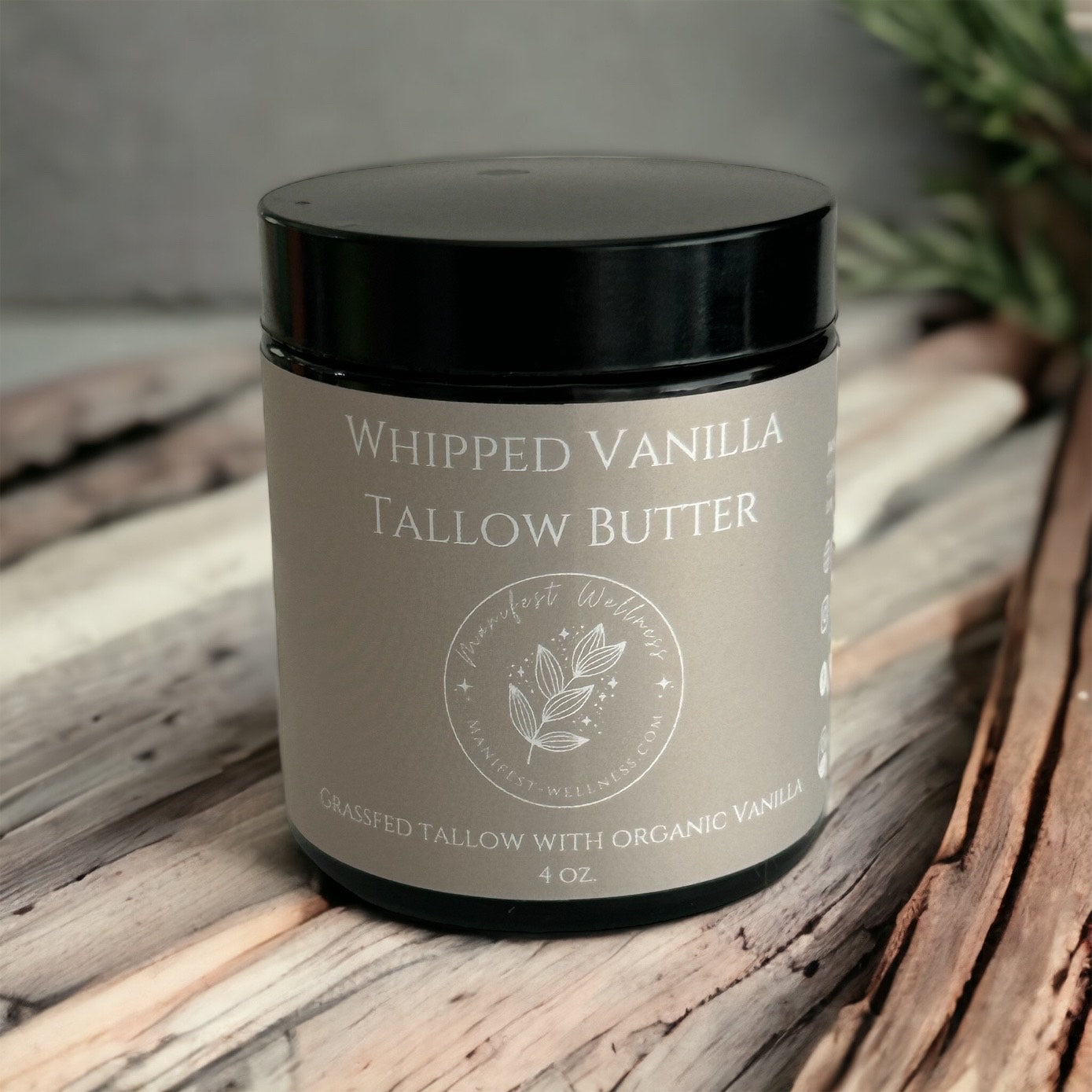 - Our tallow butter is made with grassfed tallow, organic jojoba oil and organic vanilla bean fragrance.