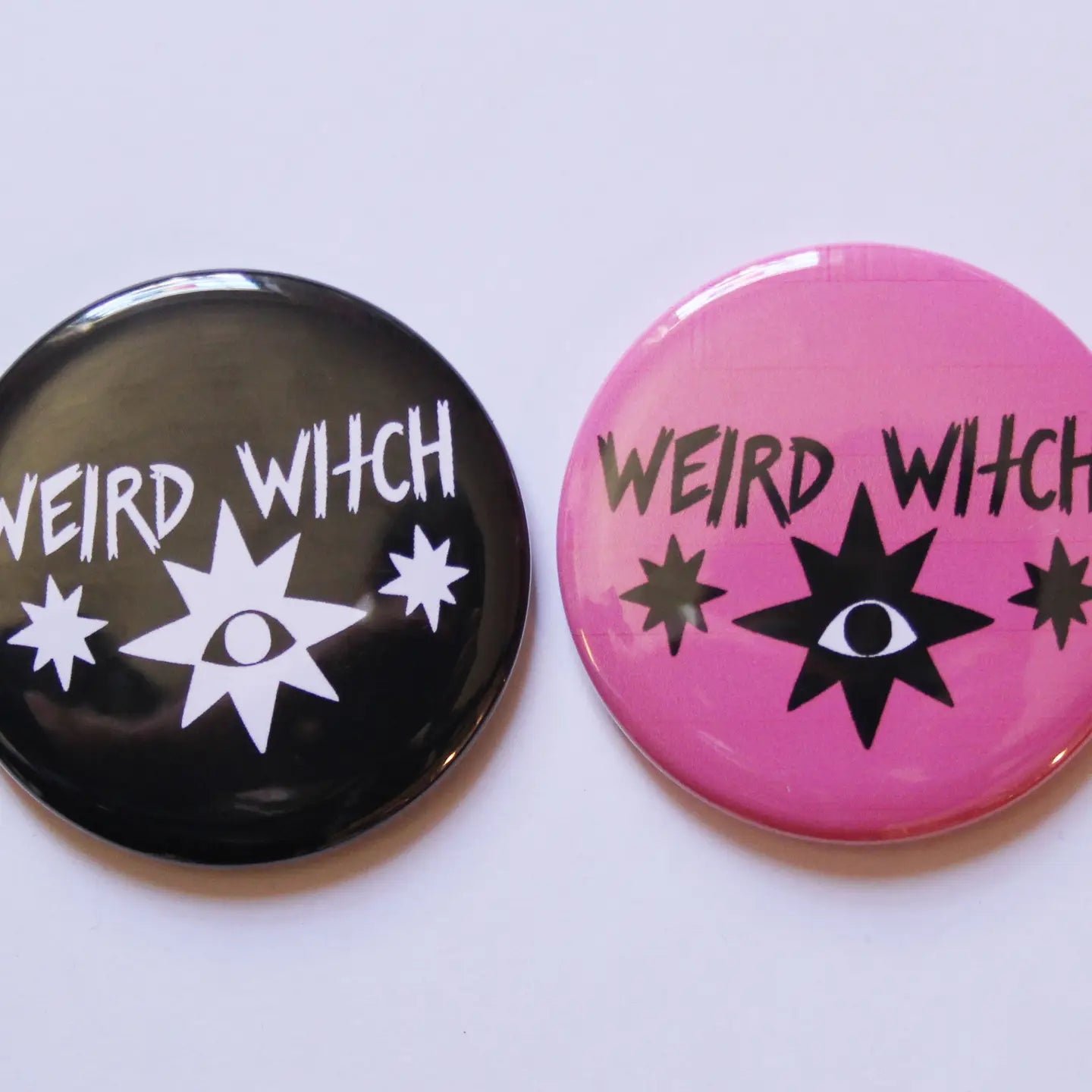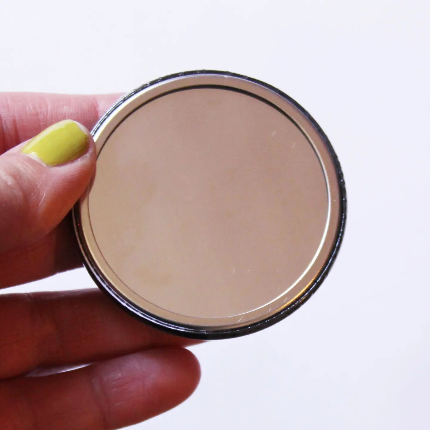 2.25 inch round mirror of my original design, vibrant print protected by mylar and mirror on the back. Comes in pink, black, or a mix!